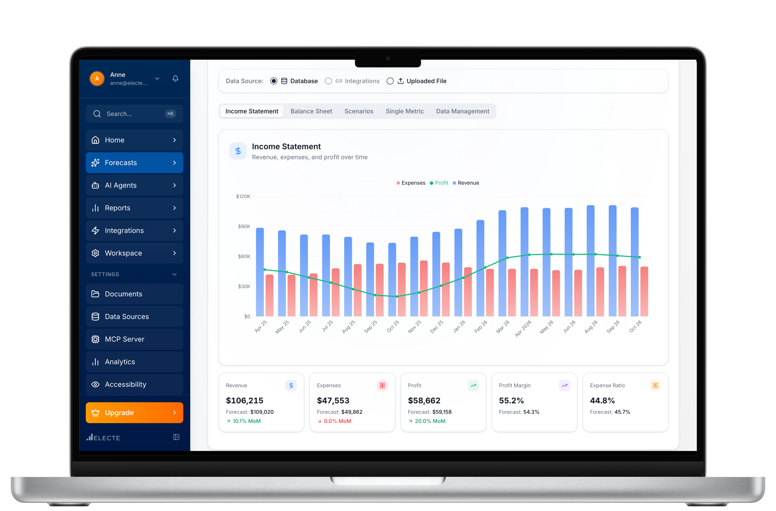 Previsiones financieras con inteligencia artificial, análisis automáticos, informes visuales y un agente autónomo: todo en una única plataforma diseñada para empresas en crecimiento.
